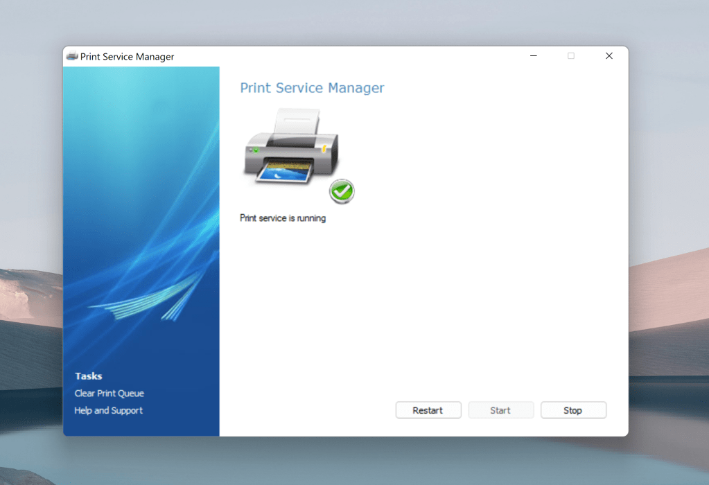 Print Service Manager is a lightweight freeware tool that allows users to manage the printing service on Windows easily. It enables users to start, stop, or restart the print service with a single click and forcibly clear the print queue in case documents are stuck.
